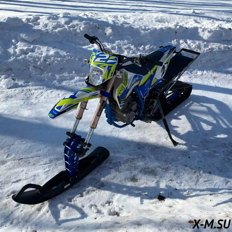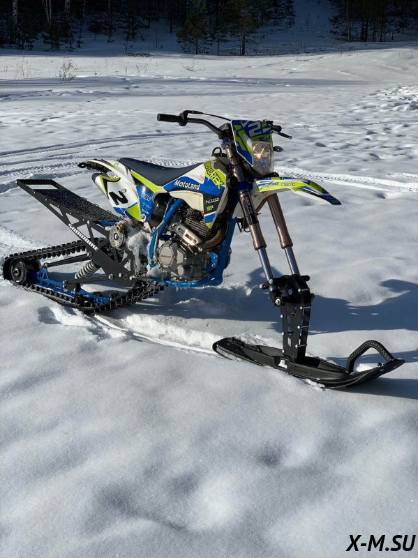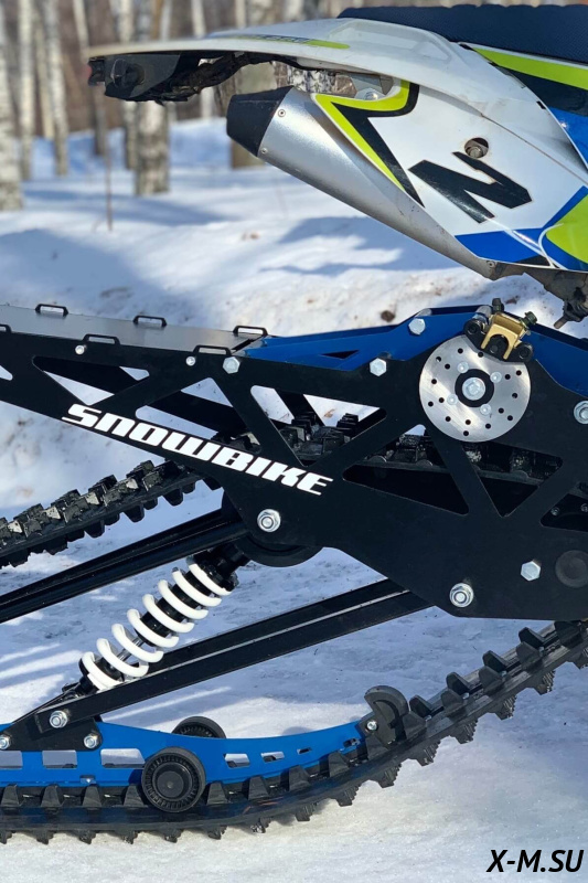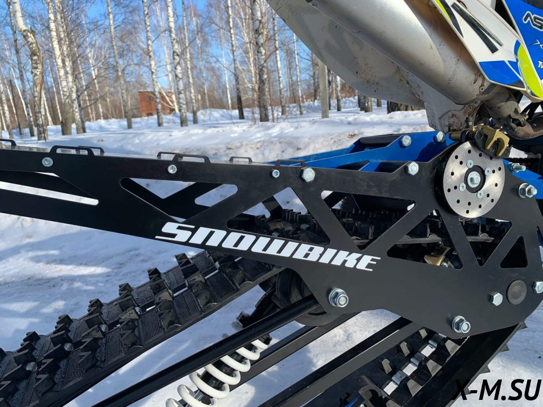 Folk 121 от Snowbike — универсальный гусеничный комплект для внедорожных мотоциклов. Гусеничный мотоцикл (СНОУБАЙК) это, по сути, одноколейный снегоход. Вы получаете возможность продлить мото сезон и эксплуатировать мотоцикл не только летом но и зимой.