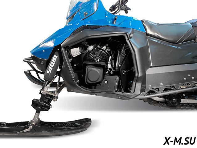 В снегоходе применяется инжекторный двигатель LONCIN H460i, 460куб., 21 л.с., с балансирным валом, что позволило получить стабильный запуск снегохода до -30 градусов С. Весь крутящий момент передается через надежный вариатор «Сафари». Во всех комплектациях применяется реверс-редуктор, индивидуально разработанный под нашу технику.